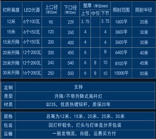 LED户外广场高杆灯性能特点: