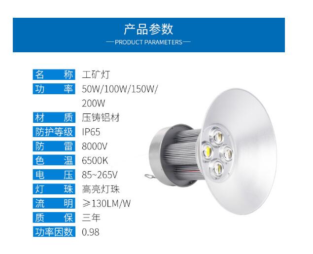 工矿灯车间天棚灯厂房吊灯150w200w能特点: