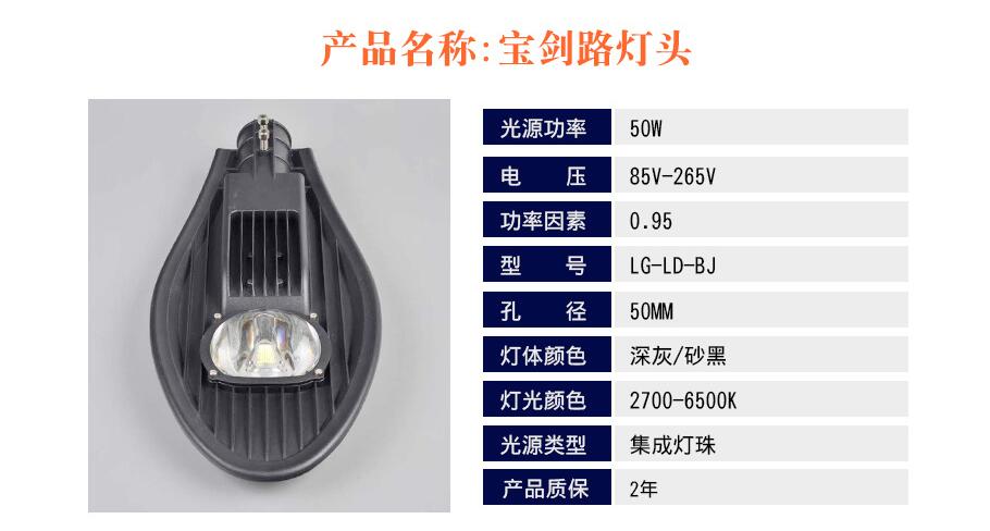 产品名称:宝剑集成路灯 50w100w150w200w250w led宝剑集成路灯头