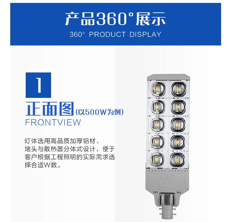 产品名称:100w 200w 300w 400w 500w 大功率路灯