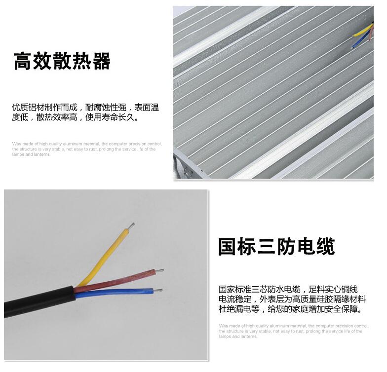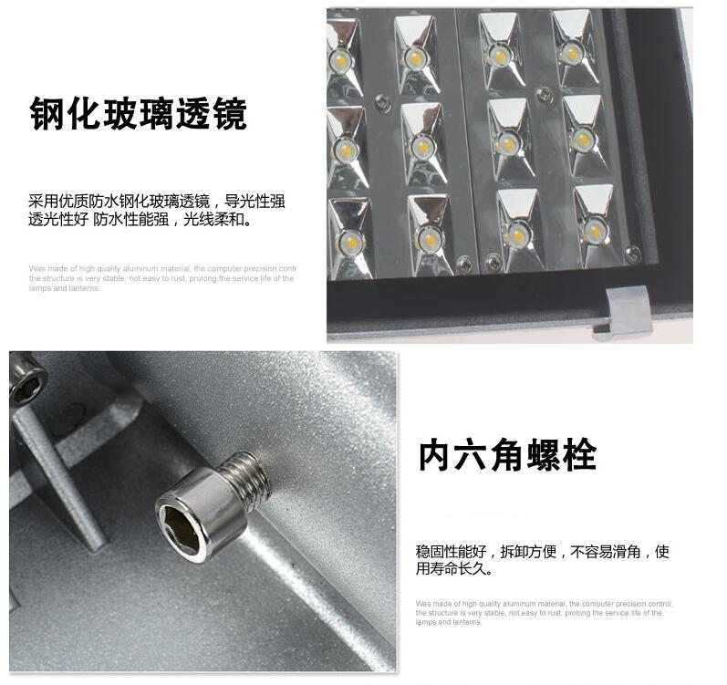 2. 灯体采用高强度压铸铝材料、表面抗老化静电喷漆处理自洁抗腐蚀性强、面罩采用钢化玻璃、抗冲击、耐摩擦;